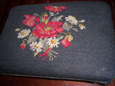 GREAT ANTIQUE VICTORIAN OLD 1890 NEEDLEPOINT FOOTSTOOL