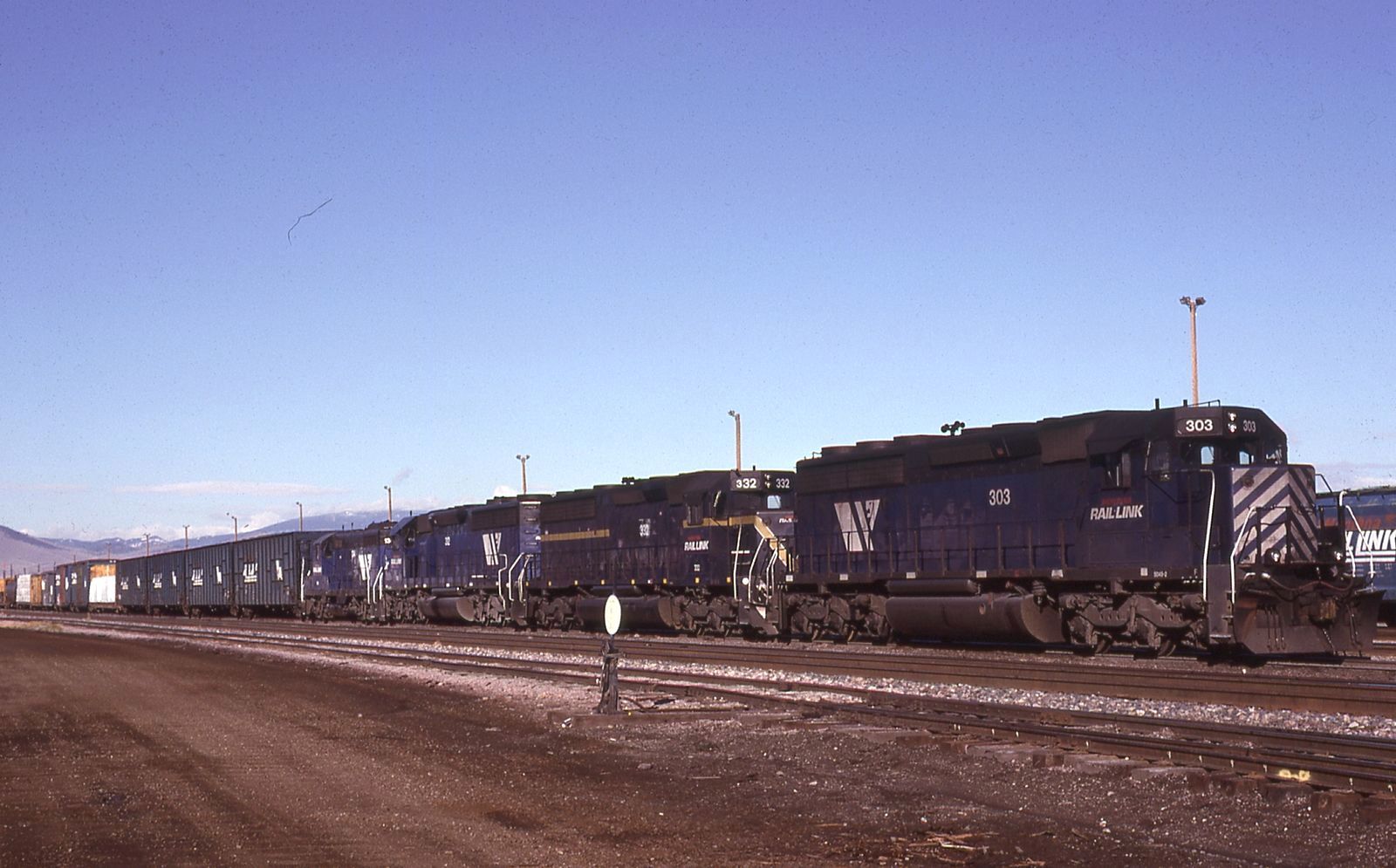 Title (ebay affiliate link): Montana Rail Link SD45-2 # 303 + 3 @ Helena, MT 10/15/2000