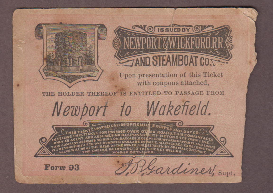 Newport & Wickford Railroad & Steamboat 1890s Ticket Pass RR Rail Road