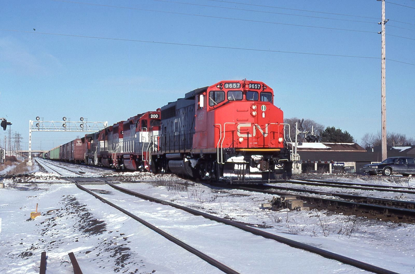 Canadian National GP40-2LW # 9567 action @ Aldershot Ontario 2/27/1994