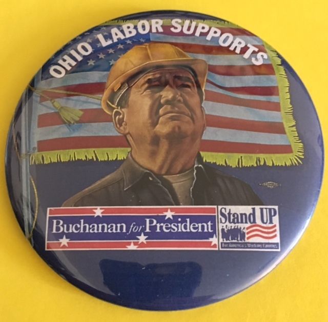 Title (ebay affiliate link): Ohio Labor Supports Pat Buchanan for President Political Campaign Pinback Button
