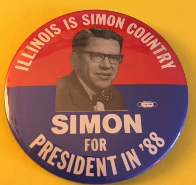 Title (ebay affiliate link): Paul Simon (Illinois) for President in '88 Political Campaign Pinback Button