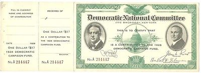 Title (ebay affiliate link): AL SMITH, ROBINSON 1928 DEMOCRATIC PARTY CONTRIBUTOR CERTIFICATE, STUBS