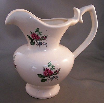 Title (ebay affiliate link): CERAMIC VESSEL PITCHER POTTERY PINK ROSES White Decorative Crafting Collectible