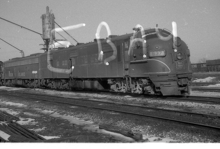 Title (ebay affiliate link): 2 original B&W negatives CRI&P Rock Island E7A #637 Blue Island, IL 1969