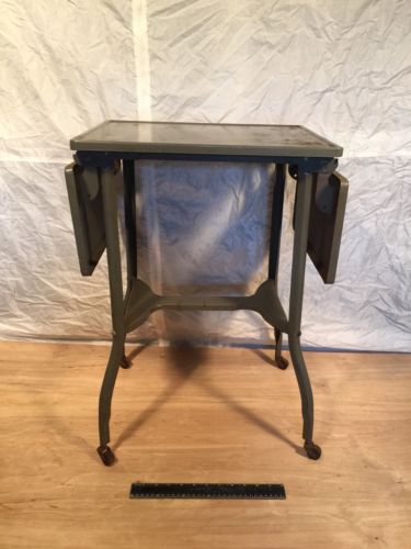 Title (ebay affiliate link): Vintage Metal Typewriter Stand Desk Table Rolling Industrial Cart Drop Leaf Gray