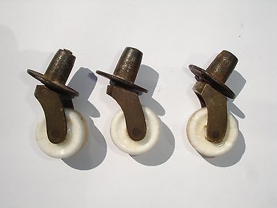 6 Antique Cast Iron Porcelain Furniture Casters 3 - 7/8" wheels & 3 - 1" wheels