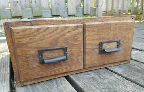 Title (ebay affiliate link): Antique Oak Library Bureau File Index Card Catalog Cabinet 2 Drawer Vtg