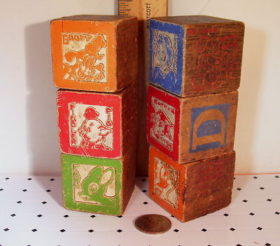 Vintage DISNEY Wood Blocks Lot of 6 Donald Duck Goofy +