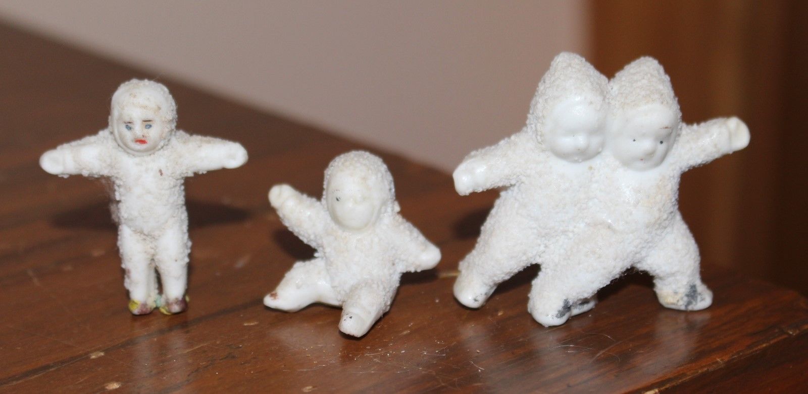 Standing Snow Baby. Two Snow babies, holding hands. Seated Snow Baby. Miniatures