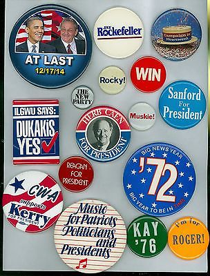 16 Vintage 1970-2014 Presidential Political Campaign Pinback Buttons - Obama
