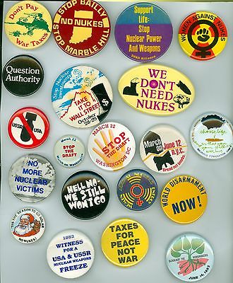 20 Vintage 1970-90's Peace & Social Justice Pinback Buttons -We Don't Need Nukes
