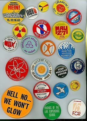 Title (ebay affiliate link): 26 Vintage 1970-90's Peace & Anti-Nuclear Social Justice Pinback Buttons Hell No