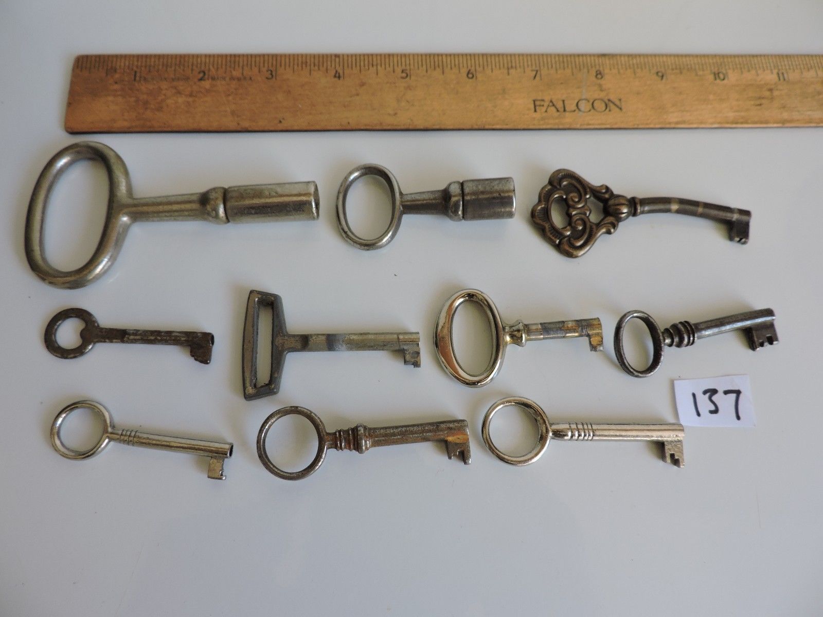 Title (ebay affiliate link): LOT OF 10 ANTIQUE SKELETON KEYS HOLLOW BARREL ORNATE CLOCK STEAMPUNK #137