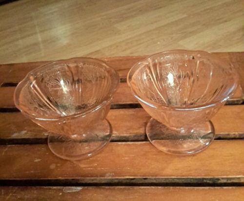2 pink depression glass dessert cups strawberry blossom design