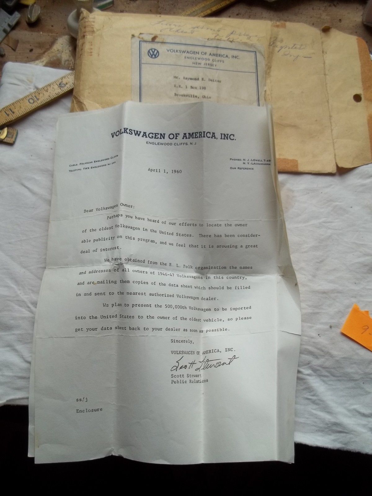 VINTAGE 1960 VW VOLKSWAGEN OF AMERICA CONTEST LETTERS 1947 SPLIT WINDOW