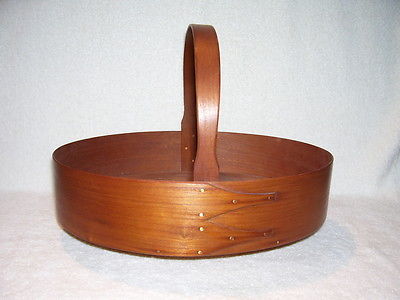 NEW LOW PRICE 2 FINGERED LAPPED SHAKER WOODEN OVAL BASKET W/ HANDLE
