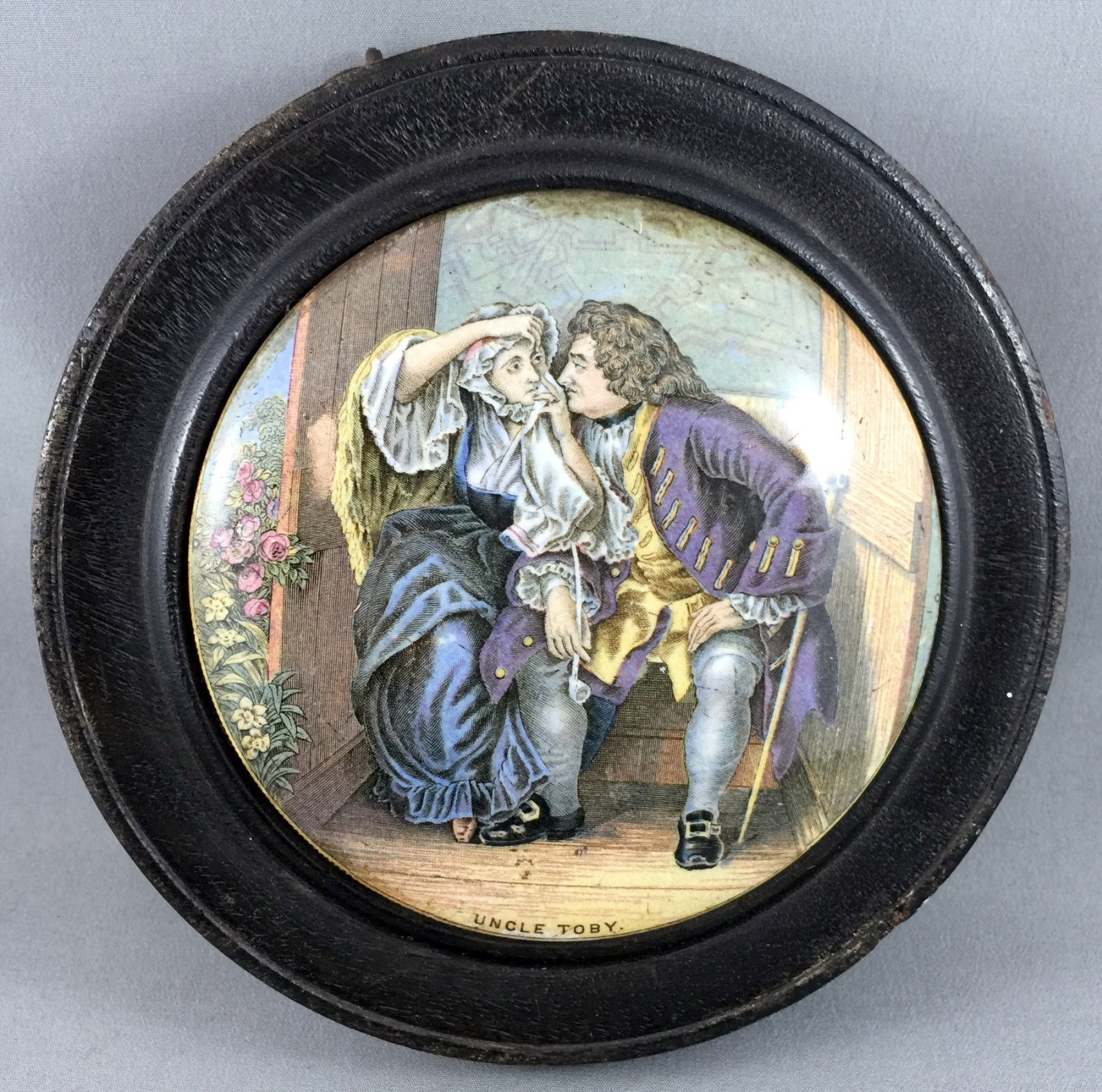 Title (ebay affiliate link): Antique Framed Victorian Pot Lid by Pratt Prattware "Uncle Toby" 1880's