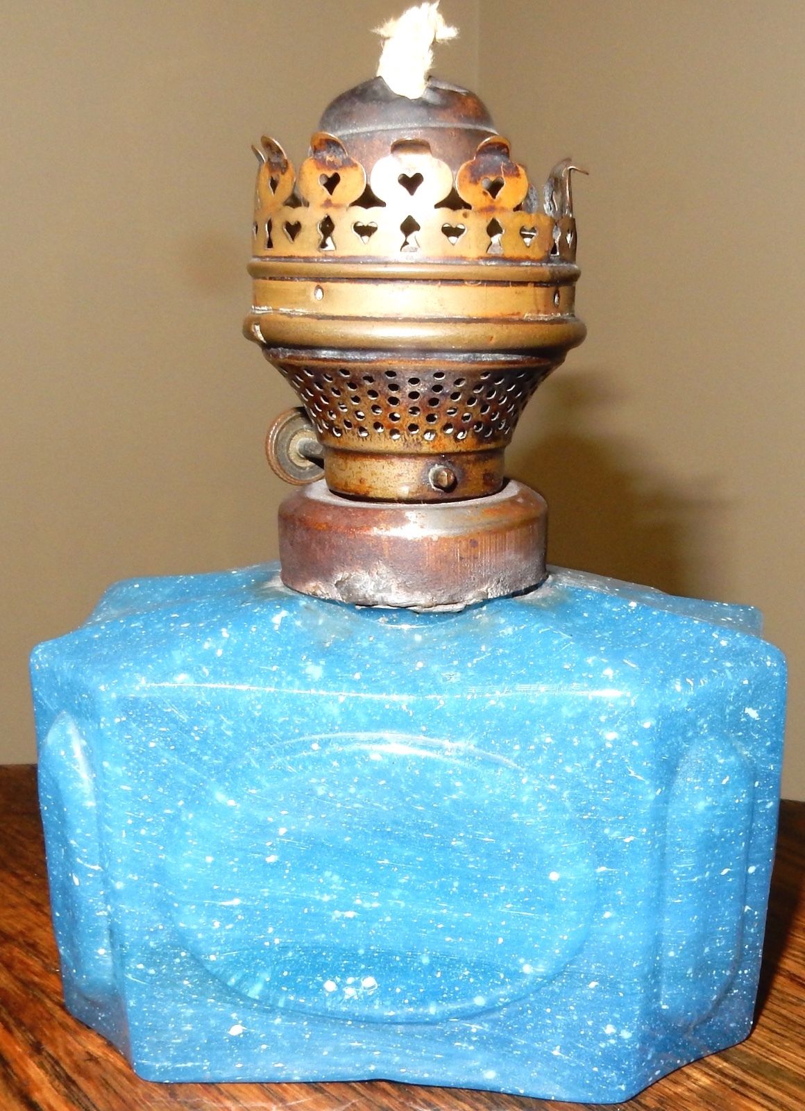 Title (ebay affiliate link): Blue glass Kerosene / Oil lamp , miniature blue lamp, possibly European