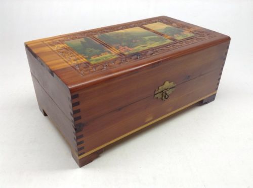 Title (ebay affiliate link): Vintage Carved Cedar Wooden Trinket Jewelry Box With Mirror And Scenes