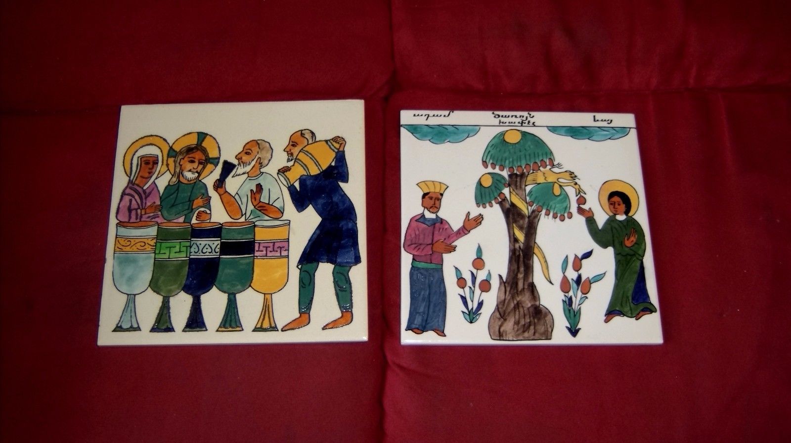Title (ebay affiliate link): TILE 2 Jerusalem Pottery ASSYRIAN 10th c ARMENIAN 17th c Religious 1976 trivet