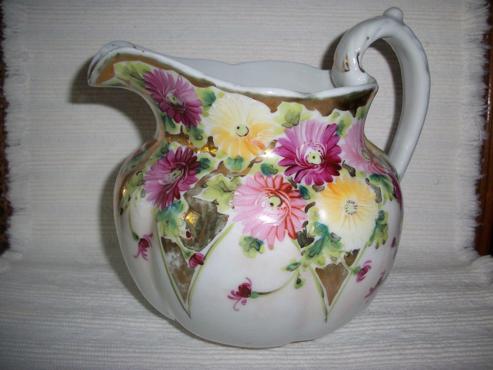 Title (ebay affiliate link): GORGEOUS ANTIQUE BULBOUS MILK PITCHER JUG FLOWERED VASE - GOLD TRIM p59rh