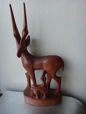 Wooden Vintage Figurine Carved GAZEL Mother & the Baby