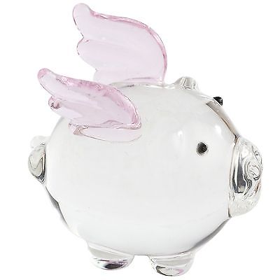 Title (ebay affiliate link): WHEN PIGS FLY, CLEAR GLASS WITH PINK WINGS, NEW IN BOX, PIER 1, PENELOPE THE PIG