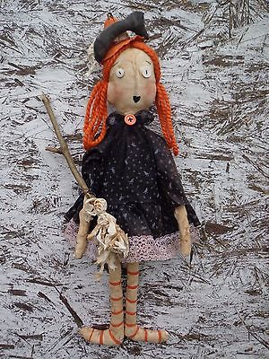 PRIMITIVE HALLOWEEN Witch Doll Shelf Sitter with Crow