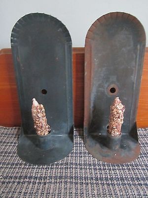 PRIMITIVE*Set of 2 Large Metal Wall Sconces & Grubby Candles*Nice Patina*etwalls