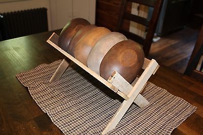 *PRIM*Set Of 5 Vintage Wooden Painted Bowls & Bowl Holder*EARLY BROWNS*etwalls