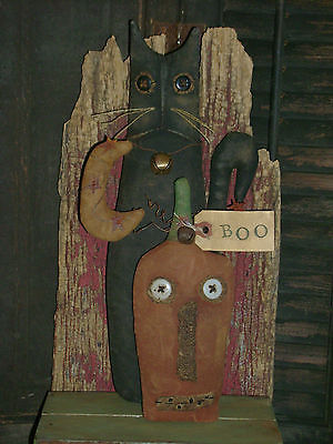 Title (ebay affiliate link): Primitive Grungy 13" Halloween Cat Pumpkin Moon Doll ~ Ro's Cluttered Attic