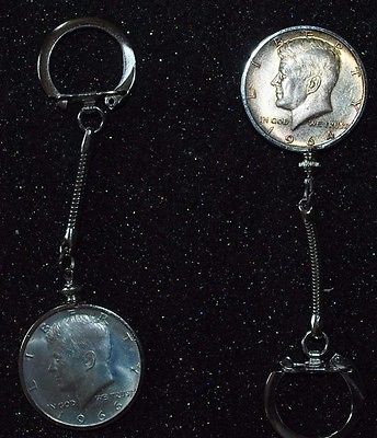 Title (ebay affiliate link): 2 Kennedy Silver Half Dollar Vintage Key Chains - 1964 P & 1966 P