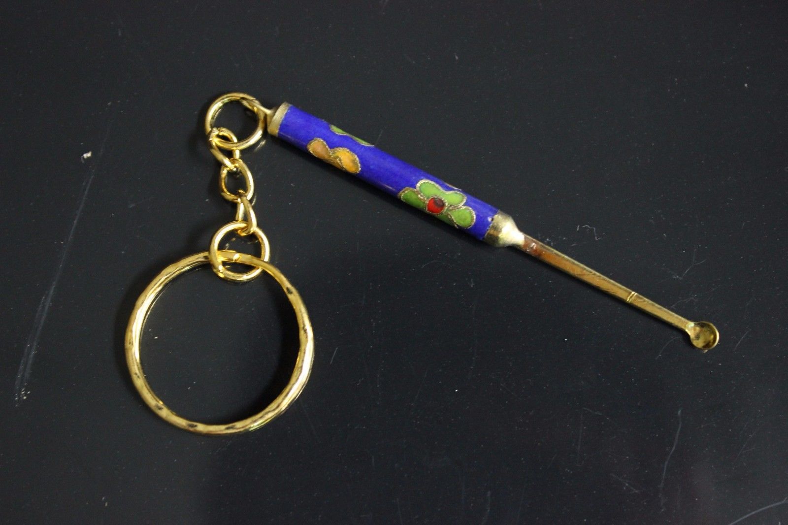 Title (ebay affiliate link): China antique old pure Bronze Cloisonne blue Earpick Key chain Filigree craft