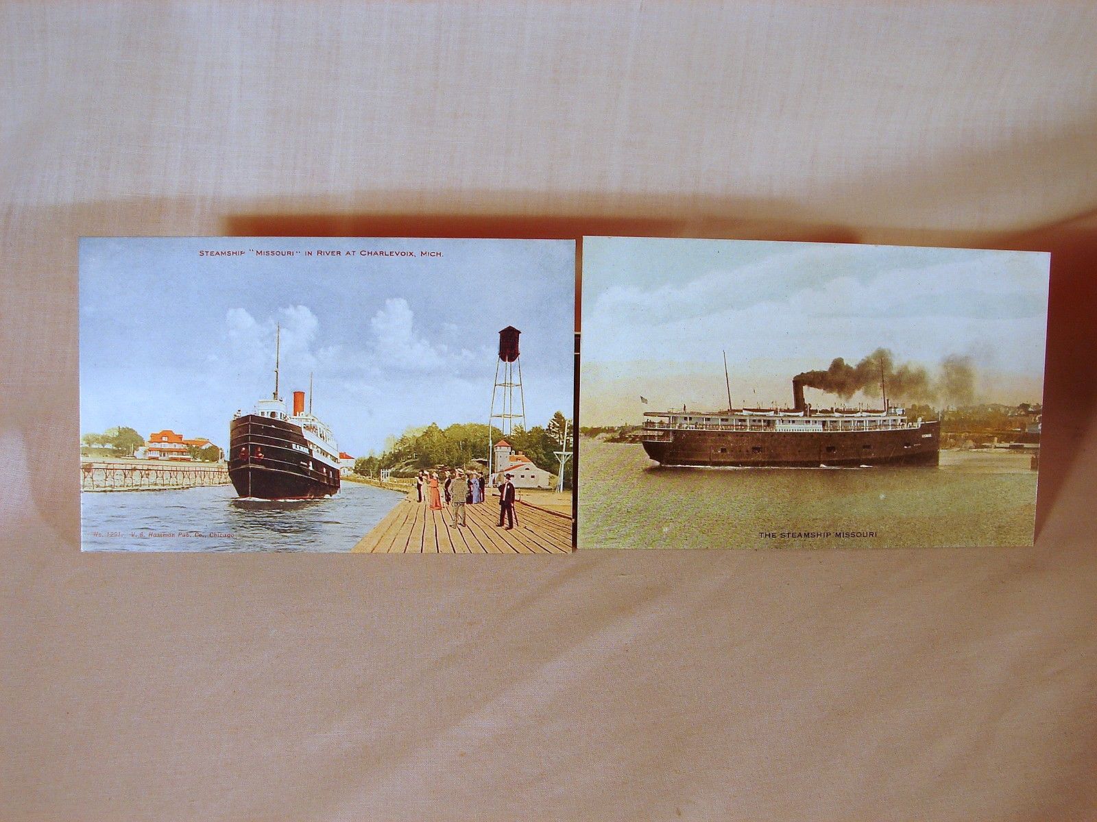 Title (ebay affiliate link): 2 ca 1913 Petoskey & Charlevoix, Michigan Steamship Missouri Postcards Excellent
