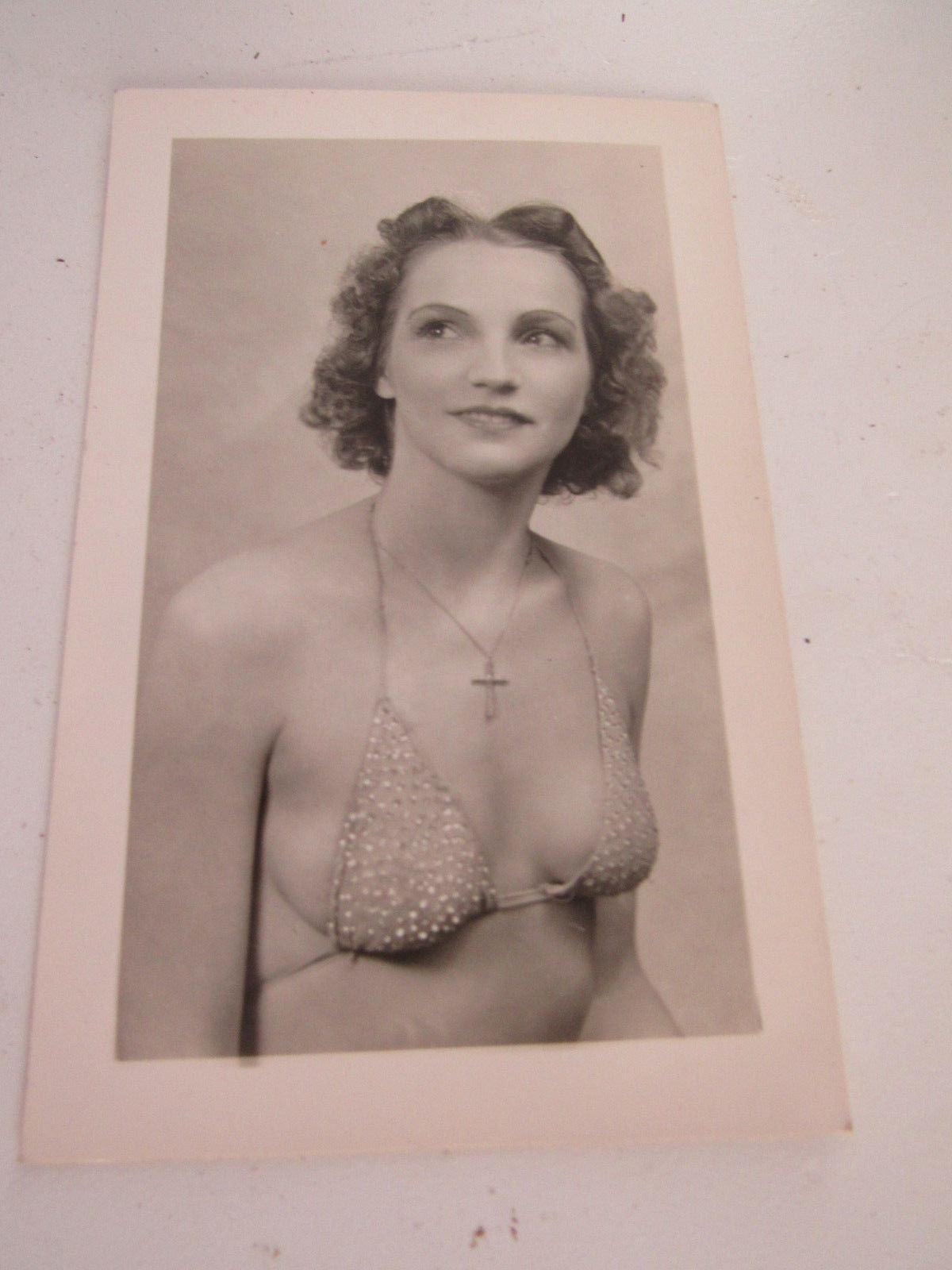 Title (ebay affiliate link): Vintage Photo Postcard Woman In Sequined Bikini Top Wearing Cross Picture Risque