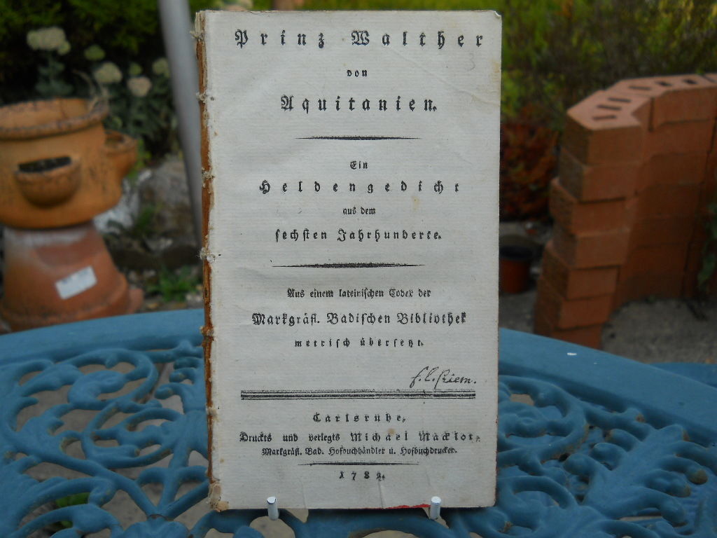 Title (ebay affiliate link): Prince Walther of Aquitaine, Ekkehard 1, Disbound German Book, printed 1782