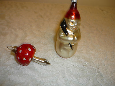 ANTIQU CHRISTMAS GLASS ORNAMENT MUSHROOM AND SNOWMAN LOT