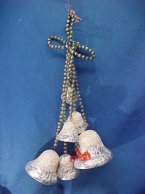 Title (ebay affiliate link): 1930s CHRISTMAS BELLS Door DECORATION Pressed PULP w MERCURY GLASS BEADS