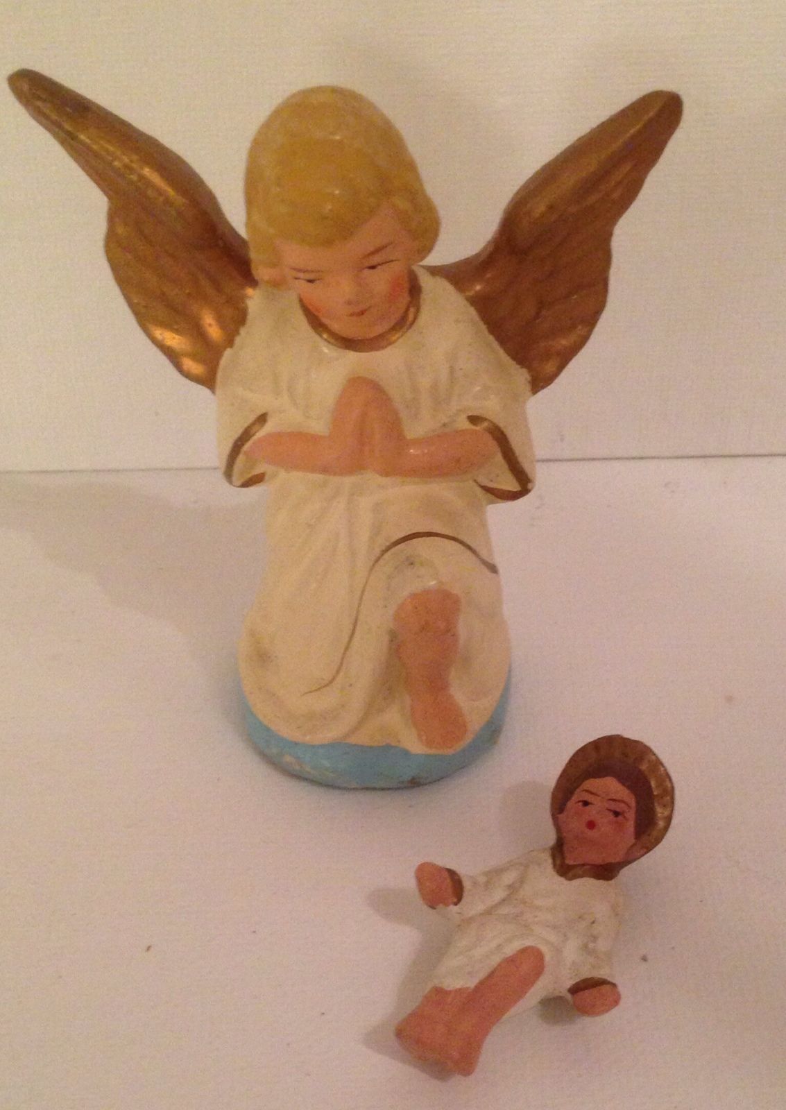 Title (ebay affiliate link): Baby Jesus and Angel GERMAN Composition PUTZ NATIVITY FIGURES