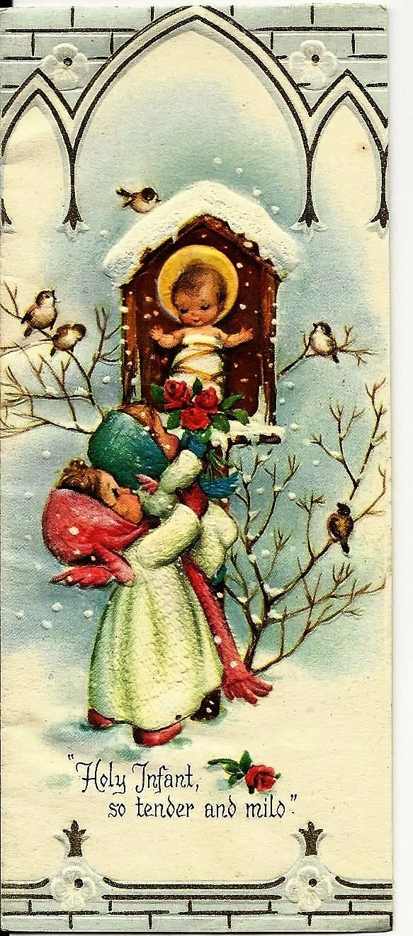 Title (ebay affiliate link): Vintage 1940's Volland Embossed Christmas Card Sweet Little Angels & Baby Jesus