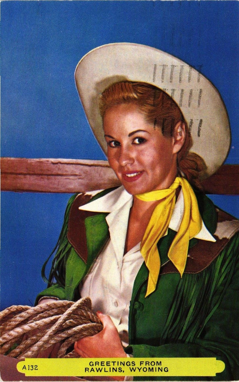 Title (ebay affiliate link): DR JIM STAMPS US COWGIRL RAWLINS WYOMING POSTCARD 1952