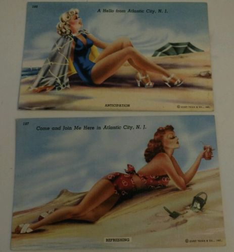 2 pin-up girls Atlantic city NJ postcards vintage beautiful antique