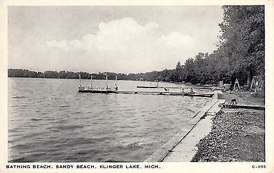 Title (ebay affiliate link): ~1940's SANDY BEACH, KLINGER LAKE MI - Bathing Scene & Piers - B&W view