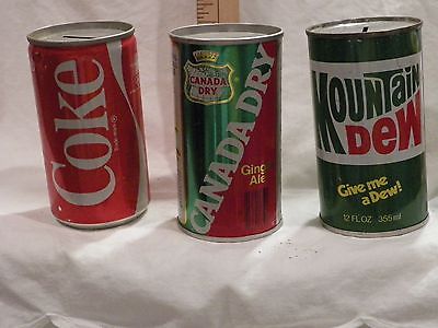 Title (ebay affiliate link): (3) SODA Coin Banks, COKE, MOUNTAIN DEW, CANDA DRY GINGER ALE