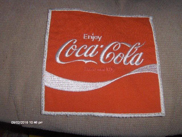 Title (ebay affiliate link): Vintage Enjoy COCA COLA Large PATCH 6"x6" Embroidered Cloth Emblem