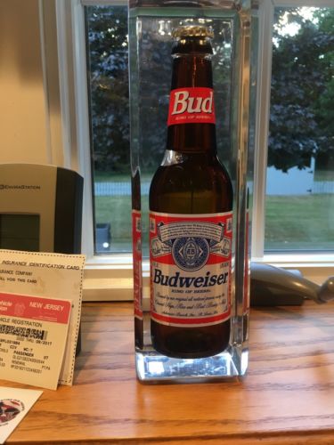 Title (ebay affiliate link): VTG FULL BUDWEISER BOTTLE ENCASED IN LUCITE, RARE COLLECTIBLE, BUD KING OF BEERS