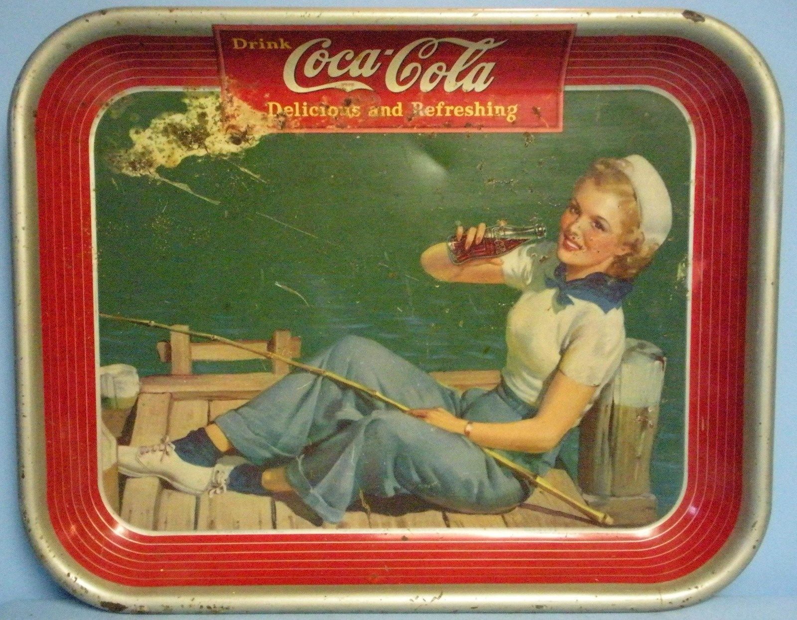 Title (ebay affiliate link): VTG Coca Cola Tray - Girl Sitting on Dock Fishsing . Dated 1940