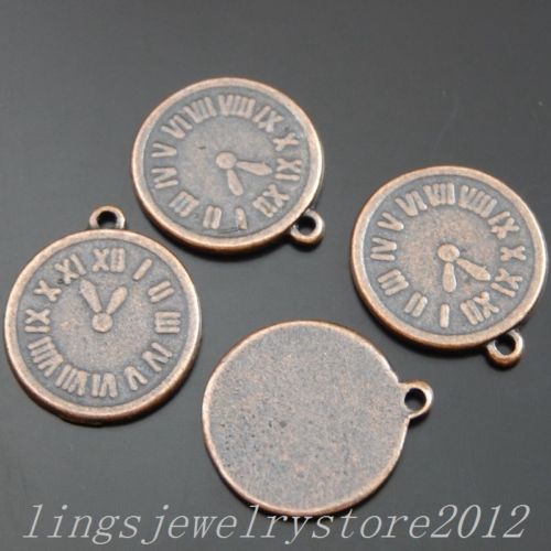 **Antique Red Copper Tone Alloy Round Clock Pattern Jewelry Pendant Charms 15pcs