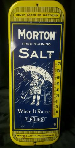 Title (ebay affiliate link): Original Vintage MORTON'S SALT Advertising Thermometer Tin